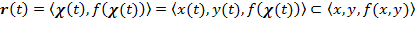 上述的代換手法亦可由幾何觀點來解釋:將 x-y 平面定義域上的一條路徑 path,經由函數 f  映射到3度空間,形成一條空間曲線 ;這式子提醒我們注意曲線  是曲面  的一部份。因此對前者的特性分析必有助於增進對後者的瞭解,雖然不能達到完全掌握,卻是比較容易可行的,這提供了一個探討多變數函數性質的基本(但不是唯一)程序。