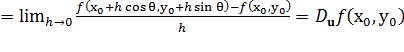 函數  在點  處某個方向  (單位向量與正x軸夾角  )的方向微分定義為: