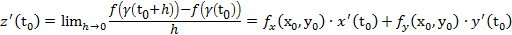 多變數微分計算的技巧主要還是處理合成函數微分的Chain Rule公式,這裡以最簡單的基本型;單變數向量函數  代入雙變數純量函數  所合成的 (其實就是路徑約化函數)來說明: